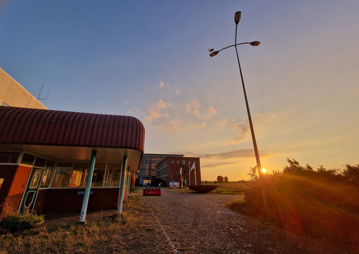 'Niks meer aan doen' is de titel van de foto. Een afbeelding van Harculo, de oude IJsselcentrale. De sfeer tekent de omgeving, inclusief de ooievaar.